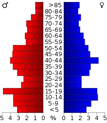 In the county, the population was spread out, with 26.50% under the age of 18, 7.90% from 18 to 24, 25.90% from 25 to 44, 22.80% from 45 to 64, and 16.80% who were 65 years of age or older. The median age was 39 years. For every 100 females there were 101.10 males. For every 100 females age 18 and over, there were 100.20 males.