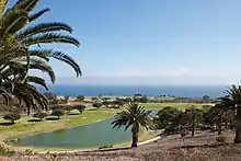 Pepperdine's Malibu campus is situated on 830 acres (340 ha) of the Santa Monica Mountains overlooking the Pacific Ocean and the Pacific Coast Highway.[42] It is its own census-designated place, located in an unincorporated area in Los Angeles County.[43] It is widely considered one of the most beautiful college campuses in the world in terms of scenery and architecture, and has been described as "a place that looks more like a beach resort than a private university."[44] The campus offers views of the Santa Monica Bay, Catalina Island, the Palos Verdes Peninsula, and much of the westside of Los Angeles. Most buildings are designed in the Mediterranean Revival Style with white stucco walls, red tile roofs, and large tinted windows. The first round of construction on the site was completed in 1973.