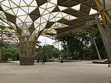 Among the tourist attractions located here are deer park, Hibiscus garden, Orchid Garden, Kuala Lumpur Bird Park and Kuala Lumpur Butterfly Park.[1] The Bird Park with a land area of over 20.9-acre (8.5 ha) was opened on 15 November 1991, features more than 3,000 birds from more than 200 species of bird and is billed as the world's largest covered bird park.[7][8][9] The butterfly park was opened in 1992,[10] spans over 80,000 sq ft (7,400 m2) of landscaped garden with over 5,000 butterflies, exotic plants, butterfly-host plants and ferns and is one of the largest houses in the world.[11][12]