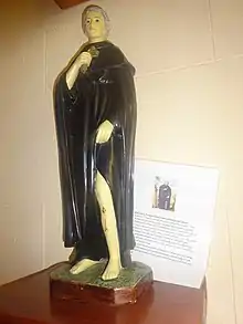 Laziosi is considered the patron saint of those suffering from cancer. The National Shrine of Saint Peregrine is located at Our Lady of Sorrows Basilica in Chicago, Illinois, as a ministry of the Friar Servants of Mary.[6] There is a St. Peregrine Shrine at The Grotto, at The National Sanctuary of Our Sorrowful Mother, in Portland, Oregon. A Saint Peregrine Mass is celebrated at The Grotto on the first Saturday of each month at 12 noon in the Chapel of Mary.[7] and there is also a St. Peregrine Laziosi Parish and Diocesan Shrine in Muntinlupa, Philippines. It houses a relic taken from Laziosi himself: a rib. It is currently on display in the church's Relic Chapel. There is a Saint Peregrine Cancer Shrine with Perpetual Eucharistic Adoration at Christ the King Catholic Church in Mesa, Arizona. The mission of this St. Peregrine Shrine is to promote perpetual adoration of Jesus Christ and to pray for those affected by cancer. In the midst of suffering, a sanctuary for spiritual healing and emotional peace is offered.[8] There is also a statue of Laziosi in the dedicated side chapel off the Serra mission chapel of San Juan Capistrano in Southern California.