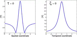 It is also possible to mathematically express the Peregrine soliton according to the spatial frequency :[3]