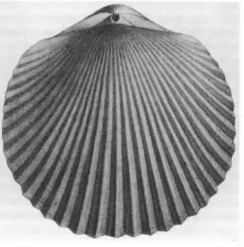 Peregrinella is an extinct Early Cretaceous rhynchonellid genus with scattered, global representation from North America to Europe and Tibet. These brachiopods are stationary epifaunal suspension feeders, its most distinguishing feature is the size, considered to be the largest of all Mesozoic rhynchonellids, which has long puzzled paleontologists because of its unusual morphology, stratigraphic occurrence, and distribution patterns.[1]