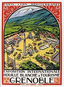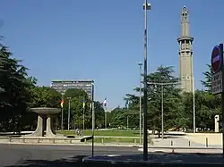 The Perret tower, originally called La tour pour regarder les montagnes ("The tower for watching the mountains"),[4] is an observation tower located in Grenoble, in the Paul Mistral public park. It is the first tower built in reinforced concrete in Europe.[5] In 1998, it was officially declared to be a national heritage site.[6] It was built for the International Exhibition of Hydropower and Tourism[7] where it was the orientation tower and the symbol of the exhibition. Nowadays, it is the last vestige of this exhibition.[7]