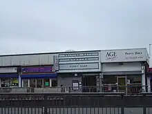 In 2019, the West Midlands Rail Executive and Transport for West Midlands put forward proposals to redevelop Perry Barr station, along with a new bus interchange, in time for the Birmingham 2022 Commonwealth Games.[4] Proposed designs were revealed in September 2020.[5] Further revisions were proposed in December.[6] The designs were approved and the station was closed on 10 May 2021 for redevelopment, with the station reopened on 29 May 2022.[7][8][9] The new building has a bronze-coloured frieze depicting athletes.[10]
