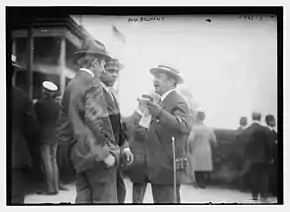 August Belmont Jr. (1853–1924),[30] was an American financier who levied the construction of the original New York subway (1900–1904) and for many years headed the Interborough Rapid Transit Co., which ran the transit system.[31] He also financed and led the construction of the Cape Cod Canal in Massachusetts, which opened in 1914. Belmont bought the land for and built New York's Belmont Park racetrack—named for his father—and was a major owner/breeder of thoroughbred racehorses.[32] He served as chairman of the board of the Louisville and Nashville Railroad.[33] He also served as a director of the Southern Pacific Co., parent of the railroad, and National Park Bank.[33] He and his brother, Perry Belmont, were also founding members of The Jockey Club.