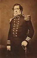 Matthew Calbraith Perry[Note 1] (1794–1858) was a Commodore of the United States Navy who commanded ships in several wars, including the War of 1812 and the Mexican–American War (1846–1848). He played a leading role in the opening of Japan to the West with the Convention of Kanagawa in 1854.