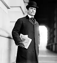 Perry Belmont (1851–1947),[26] served as a Democrat to the 47th Congress, followed by a career in the U.S. representative for the first district of New York from March 4, 1881, until his resignation on December 1, 1888.[27] During his first term, he was a member of the committee on foreign affairs; noted for his cross-examination of James G. Blaine, the former secretary of state. Belmont also served from 1885 to 1887 as chairman of the committee on foreign affairs, and on October 6, 1890, was invested as a Commander of the French Legion of Honor. In 1898, during the Spanish–American War, Perry served for six weeks in the Army as an Inspector General of the First Division, Second Army Corps, United States Volunteers, with the rank of major. He was appointed United States Minister to Spain that same year.[28] During the First World War, despite being 65 years old, Belmont was commissioned as a captain in the U.S. Army Quartermaster Corps on May 5, 1917. He was assigned to the Remount Division in Washington, D.C., and was discharged on May 21, 1920.[29]