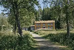 Located closer to the forest, the whole Mortengården farmstead includes seven log buildings with turf roofs. These seven buildings were relocated to this site from different farms of Troms after the Second World War to represent a typical coastal farm from the 19th century. The main Mortengården building was originally a two-room living room built in the second half of the 18th century from Straumshamna on Kvaløya. It has no external cladding except for the sea-facing facade painted yellow.[6]