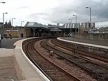 - Platforms 1 and 2 sit on the eastern side (the old Dundee & Perth Railway part of the station) and are the busiest in the station as they handle the Glasgow to Dundee and Aberdeen trains. These platforms are 20 miles 64 chains (33.5 km) from Dundee. The two platform lines then become single further east to cross the bridge spanning the Tay. Platform 3, which adjoins platform 2, is a through platform that sees a few terminating services from the south, although it can be accessed form the north from the Highland Main Line.