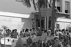 After personally witnessing the stream of asylum-seekers flood the embassy compounds, Fidel Castro requested a meeting with Ernesto Pinto Bazurco Rittler on the morning of April 5. During the negotiations, Castro and Rittler discussed the undetermined status of Cubans inside the Peruvian embassy, particularly on whether they should be considered refugees or asylum-seekers. Ultimately, both settled on the term “emigrating people” as the official label. While these negotiations took place, the number of Cubans entering the embassy compound had swiftly risen to over 10,000.[6][5] Castro's ploy to embarrass Peru while setting a precedent for other Latin American embassies in Cuba was quickly turning into an embarrassment for the Cuban communist regime as the increasing number of asylum-seekers vastly exceeded the few “malcontents” Castro had anticipated.[3]