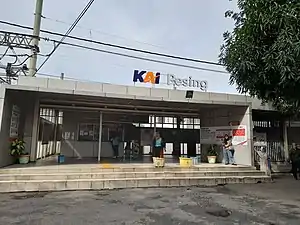 Pesing Station (PSG) is a railway station in Wijaya Kusuma, Grogol Petamburan, West Jakarta, Indonesia. It is the third station on the Duri-Tangerang branch line and KRL Commuterline Brown Line service. The station is near to the office of television broadcasting company Indosiar.