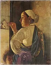 Bomanji's Parsi heritage is reflected in the depictions of daily and religious life seen in works such as Feeding the Parrot and The Parsi Fire Ceremony. He exhibited at shows around the country. His Parsi Tiger Slayer was deemed the best work by a 'native artist' at the 1889 exhibition of the Bombay Art Society. He won the Governor's Gold Medal at Chennai, Pune and Kolkata, as well as a cash prize of Rs 500 at the 1883 International Exhibition at Kolkata for his Parsi Lady Sewing.