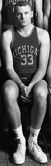 As a student at the University of Michigan, he played center for the Michigan Wolverines men's basketball team from 1955 to 1958. He was the captain, most valuable player, and leading scorer on the 1957–58 Michigan Wolverines men's basketball team.[7][8] He scored 415 points during the 1957–58 season (an average of 18.8 points per game), the second highest point total in Michigan's history to that point.[7][9]