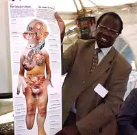 Odhiambo has campaigned widely against substance use and is at the forefront in the fight for the liberation of tobacco farmers in East Africa. He has steered the Kenya Tobacco Control Board to a successful level enabling the board be legally institutionalized. He has also played a key role in ensuring that the legal mandate of the board is within the laid down legal framework as per the Tobacco Control Act of 2007, thus the Board has all the necessary instruments to operate legally. In 2008, Odhiambo won a World No Tobacco Day Award from the World Health Organization for his accomplishments in the area of tobacco control.[1] In 2016, the Tobacco Control Board of Kenya won a WHO World No Tobacco Day Award.[2] He worked tirelessly behind the scenes to create awareness on the dangers of shisha (hookah), and was instrumental in the Kenya government's decision to ban shisha in the country.