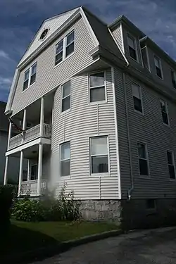 The Peter Baker Three-Decker is a historic triple decker in Worcester, Massachusetts. Built c. 1902, it is a well-preserved example of a gambrel-roofed Colonial Revival three-decker, and an early example of this style in the neighborhood. It was listed on the National Register of Historic Places in 1990.[1]