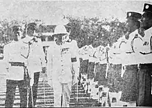 ![]() Gautrey inspecting the Brunei honour guard in conjunction to the Queen's Brithday in 1972 | |