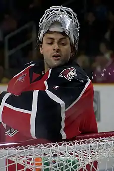 On January 12, 2012 Mannino was reassigned to the Chicago Express of the ECHL by his parent club the Winnipeg Jets.[3] On March 2, 2012 Mannino was acquired by the Pirates via loan from the St. John's IceCaps.[4] During the 2012–13 season, Mannino signed an AHL contract with the Manchester Monarchs, top affiliate of the Los Angeles Kings, he signed a one-year agreement on December 4, 2012. In 20 games with the Monarchs, Mannino posted 10 wins.