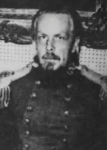 Styling himself as "His Imperial Majesty Petros I, Despot and Autokrator of the Romans, The Prince Palaeologus",[1][2] and also claiming to be the rightful Grand Master of the Constantinian Order of Saint George, as well as the "Duke of Morea",[2] Mills usually wore a faux military uniform, or sometimes long flowing robes.[1] Mills' uniform appears to have been a modified version of a uniform used by certain officers in the British military.[9] Through some of his supposed English ancestors, Mills also claimed the style "Count Saddington".[3] He was often seen around Newport,[10][11] walking around "with long flowing white hair, sandals but no socks and some sort of order or military award around his neck".[11] Mills frequented the local record office, searching for further proof to strengthen his genealogy, trying to fill in the gaps in his invented lineage.[10][9]