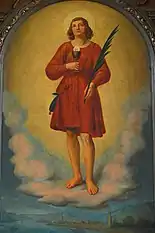 In 1851, thanks to the religious artist Ernst Deger, he was able to get work assisting Alfred Rethel, a fellow student from the Akademie, with a project at the Aachen Town Hall, which had been started in 1847 but was delayed due to Rethel's poor health. Back in Koblenz, in 1854, he married Amalia Schneider, daughter of the court carpenter, Jakob Franz Schneider.[1] In 1857, with his wife and infant daughter, he accepted another job offer from Deger and moved to Kapellen (now part of Koblenz), where their son, Franz, was born. This project involved wall paintings commissioned by King Frederick William IV of Prussia for Stolzenfels Castle.