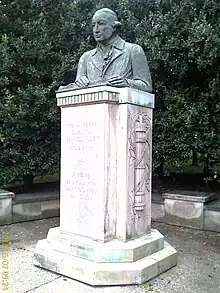 Peter Muhlenberg Memorial in Washington, D.C., on Connecticut Avenue. The inscription reads "John Peter Gabriel Muhlenberg 1746  1807 Serving His Church, His Country, His State".[16]