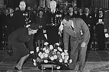 ![]() Tazelaar (left) with Rie Stokvis and Erik Hazelhoff Roelfzema in Breda on 2 May 1945. | |