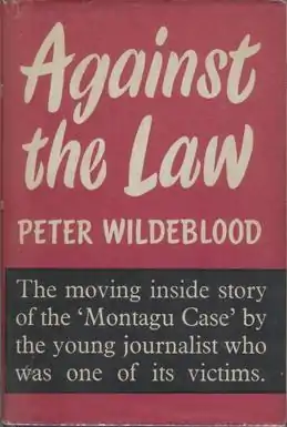 He published a book on the case, Against the Law, in 1955, an account which detailed his experiences at the hands of the law and the British establishment, brought to light the appalling conditions in HM Prison Wormwood Scrubs, and encouraged campaigns for prison reform and for reform of law regarding homosexuality. The book was a confessional autobiographical book and an early example of a 'coming out' text because of Peter Wildeblood openly declaring 'I am homosexual'. Through this book Peter Wildeblood advocated legal reform from his position of an avowedly gay man. Also Wildeblood attempts to distance the homosexual from stereotypical connotations such as indulgence and ephemera. He reframed the context of homosexual lives, laying a pathway towards not only arguing for acceptance, but also more importantly expecting equality.[10][11][12] C. H. Rolph wrote in the New Statesman that Against the Law was "the noblest, and wittiest, and most appalling prison book of them all". To Wildeblood, "it was merely part of the story which had been implicit in me from the day when I was born".