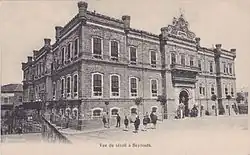 The Petit Serail was planned as a civic center following the Tanzimat reform and according to the Beirut municipality project of 1878. The northern side of Sahet el-Bourj was chosen as a strategic site since it occupied the heart of the new extra-mural city. The new structure was commissioned by Beirut mayor Ibrahim Fakhri Bey, construction began in 1881 at the site of a former saray that was ordered demolished by the Wali Hamdi Pasha.[6][7] The serail was built by Bechara Effendi Avedissian, chief engineer of the Vilayet of Syria and Youssef Effendi Khayat, engineer of the city of Beirut,[3][7] but the project ran into financial difficulties as attested by a number of correspondence letters between the Wali of Syria Ahmad Hamdi Pasha and the Porte. Hamdi Pasha took up a loan form the Ottoman Bank, mortgaged public buildings and imposed new taxes in order to furnish the new serail's offices. In 1883, a park was inaugurated in the square in front of the Serail. The park was called "Hamidie" in honor of the reigning Sultan Abdul Hamid II, but was more commonly known as the Menshieh garden.[8] The Petit Serail was inaugurated three years after the beginning of construction works in 1884.[6][9]