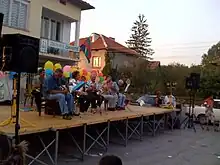 Watermelon Day is a popular annual festivity in Petrevene which is celebrated every year on the penultimate Saturday of August.[3] It was first held in 1936 and it is a popular belief within the village that it started off as a regional land dispute between Petrevene and the nearby village of Todorichene.[2] The legend, according to the local people, is that several bad harvests had impelled the Petrevenians to place claims on lands of Todorichene. To settle the dispute that followed, a regional judge was brought in from Pleven to settle the matter. He declared that everyone should be assigned 1.5 square kilometres (0.58 sq mi) of land. With the lack of wheat, the Petrevenians decided to plant watermelon instead. With no market for them, however, the younger men of the village decided to collect all the watermelons and store them in the schoolhouse and let anyone eat as much as they wanted for free, on the condition that they would first see caricaturist Nicola Velev's exhibition in the library.[2] Although popular, the story has little historical merit. Although there have been records of Watermelon Day going as far back as 1936, no existing records tell of bad harvests in the years prior to that date or of the above-mentioned land divisions.[39]
