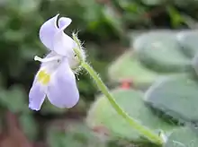 Petrocosmea forrestii is a species of flowering plant in the family Gesneriaceae native to China,[1] and sometimes cultivated as a houseplant. It grows among rocks in shady places.[1] Like other species in its genus, it does not develop a stem above ground, but spreads by rhizomes.[2] The entire rosette of leaves is less than 15 centimetres (5.9 in) in diameter.[1]