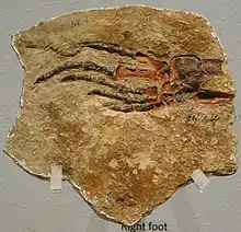 Specimen KUVP 1424, an articulated foot fossil which serves as the holotype of Petrolacosaurus