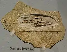 Petrolacosaurus ("rock lake lizard") is an extinct genus of diapsid reptile from the late Carboniferous period. It was a small, 40-centimetre (16 in) long reptile, and one of the earliest known reptile with two temporal fenestrae (holes at the rear part of the skull). This means that it was at the base of Diapsida, the largest and most successful radiation of reptiles that would eventually include all modern reptile groups, as well as dinosaurs (which survive to the modern day as birds) and other famous extinct reptiles such as plesiosaurs, ichthyosaurs, and pterosaurs. However, Petrolacosaurus itself was part of Araeoscelida, a short-lived early branch of the diapsid family tree which went extinct in the mid-Permian.