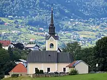 The local church is dedicated to John the Baptist (Slovene: sveti Janez Krstnik) and belongs to the Parish of Črnomelj. It was first mentioned in written documents dating to 1526, but has been extensively altered over the centuries.[4]