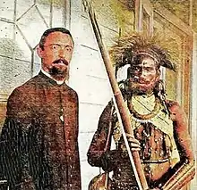 He was born in Hamme on 3 October 1884, to Hendrik and Clemence Van den Brande.[2] Vertenten worked from 1910 to 1925 on the south coast of Dutch New Guinea among the Marind-anim, a Papuan people living in the area of Maurake,[3] who at the time were notorious for their headhunting and peculiar sexually oriented rituals.[4][5] The spread of an imported venereal disease, the granuloma venereum, led this population - partly due to its own ritual practices - almost to extinction. Father Vertenten repeatedly alerted the Dutch government in Merauke and eventually even got to speak to the governor-general in Batavia about this.[6] As a result, a parliamentary debate was held in the Netherlands about the state of health in New Guinea.[7] Vertenten succeeded and a squad of vaccinators and other medical personnel were deployed to save the Marind-anim from extinction.[8][4] Vertenten went down in history as "savior of the Kaja-Kaja's" (Kaja-Kaja is an old-fashioned name for the Marind-anim) and was appointed a Knight of the Order of Orange-Nassau for his efforts.[9]