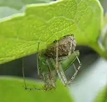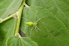 - 1 2 "Taxon details Peucetia viridana (Stoliczka, 1869)". World Spider Catalog. Natural History Museum Bern. Retrieved 2016-07-16.
