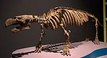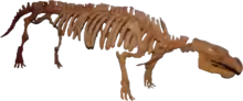 Pezosiren portelli,[2] also known as the "walking manatee", is a basal sirenian from the early Eocene of Jamaica, 50 million years ago. The type specimen is represented by a Jamaican fossil skeleton, described in 2001 by Daryl Domning,[3] a marine mammal paleontologist at Howard University in Washington, DC. It is believed to have had a hippopotamus-like amphibious lifestyle, and is considered a transitional form between land and sea mammals.[4]