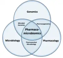 Pharmacomicrobiomics, proposed by Prof. Marco Candela for the ERC-2009-StG project call (proposal n. 242860, titled "PharmacoMICROBIOMICS, study of the microbiome determinants of the different drug responses between individuals"), and publicly coined for the first time in 2010 by Rizkallah et al. (from Ramy K. Aziz research group), is defined as the effect of microbiome variations on drug disposition, action, and toxicity.[1] Pharmacomicrobiomics is concerned with the interaction between xenobiotics, or foreign compounds, and the gut microbiome. It is estimated that over 100 trillion prokaryotes representing more than 1000 species reside in the gut.[2][3] Within the gut, microbes help modulate developmental, immunological and nutrition host functions.[4] The aggregate genome of microbes extends the metabolic capabilities of humans, allowing them to capture nutrients from diverse sources.[5] Namely, through the secretion of enzymes that assist in the metabolism of chemicals foreign to the body, modification of liver and intestinal enzymes, and modulation of the expression of human metabolic genes, microbes can significantly impact the ingestion of xenobiotics.[6]
