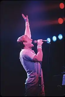 Collins's fifth album, Both Sides, was released in 1993; although it was less successful than his previous albums and produced only one UK top-ten single, the album still reached number one in the UK.[2] His next album, Dance into the Light, was released in 1996 and was even less successful, peaking at number four in the UK and was only certified silver.[2][3] A greatest hits compilation, ...Hits, was released in 1998 and was successful, returning Collins to UK number one and multi-platinum status in the UK and US.[2][3][5] The album's sole new track was a cover of the Cyndi Lauper hit "True Colors". Collins also wrote and performed songs for the Disney animated films Tarzan and Brother Bear. Collins's seventh studio album, Testify, was released in 2002. It was a success in Europe, peaking at number fifteen in the UK and within the top five in Austria, Germany and the Netherlands.[2][6] After the release of Testify, Collins announced that he was going into semi-retirement,[7] and released two compilation albums in 2004, The Platinum Collection and Love Songs: A Compilation... Old and New. In 2010, Collins released his eighth and final studio album, Going Back, after which he went into a brief four-year retirement, before returning to the music industry in 2015. By 2016, Collins remastered and reissued all of his studio albums and released his fourth compilation album, The Singles.