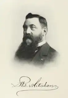 Phil Metschan (1840-1920), originally from Germany, immigrated to the United States in 1854. He lived in Ohio, Kansas, and Colorado, before traveling west to Sacramento, California in 1861. He soon moved on to Portland, Oregon, where he ran a bakery until it was destroyed by the flood of 1862. He then ran a store in Canyon City and got his start in state politics. He married Maria (Marie) Catharina Schaume (1841-1895), a native of Germany who had immigrated in 1864, living first in San Francisco and then Canyon City. Metschan served as Oregon State Treasurer from 1891-1899, and then bought the Imperial Hotel in Portland.[1] His son, Phil Metschan Jr., helped him run the new Imperial Hotel, built in 1910. He had nine children, including Frank F. Metschan, Edward L. Metschan, Anna Metschan Cattanach, and Lillian Metschan Flanders (wife of Jesse Evans Flanders).[2]
