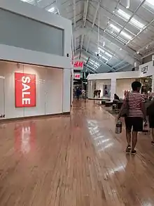 The 1,600,000-square-foot (150,000 m2) mall consists primarily of factory outlet stores.[4] As of Early 2021, the surviving major anchor tenants included Marshalls and Burlington. When the mall first opened in 1989 the original anchors were JCPenney; Sears; Ports of the World, Reading China and Glass, and Phar-Mor.[11][12] Over time, the Ports was re-branded as Boscov's, and was later replaced by Steve & Barry's. Reading China & Glass closed and its building was split between Marshalls and OfficeMax. Sears Outlet left the mall for the first time and was replaced by General Cinema, itself acquired by AMC Theatres. OfficeMax later left the mall, and Sears Outlet returned taking the OfficeMax space. Original stores remaining in the mall include Modell's, which have been joined by Forever 21, Last Call, H&M, & Off 5th and Walmart. On December 15, 2011, it was announced that JCPenney would be returning to the mall as a department store, in its original location; the outlet store had been closed as part of a nationwide realignment by the retailer of all its outlet stores.[13] On March 17, 2017, JCPenney announced that its store would be closing as part of a plan to close 138 stores nationwide;[14] the store closed on July 31, 2017.[15] As of September 2020, Sears Outlet has rebranded as American Freight. The former JCPenney store is now occupied by Turn 7 Liquidators as of October 2021.