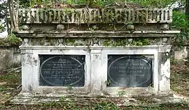 Grave of Philip Dundas (left), at the Protestant Cemetery, Penang. The grave next to him is of John Hope Oliphant, a councillor of Penang who was married to Dundas's sister-in-law.