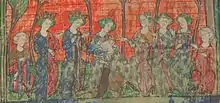 Philip married Queen Joan I of Navarre (1271–1305) on 16 August 1284.[9] The two were affectionate and devoted to each other and Philip refused to remarry after Joan's death in 1305, despite the great political and financial rewards of doing so.[10] The primary administrative benefit of the marriage was Joan's inheritance of Champagne and Brie, which were adjacent to the royal demesne in Ile-de-France, and thus effectively were united to the king's own lands, expanding his realm.[11] The annexation of wealthy Champagne increased the royal revenues considerably, removed the autonomy of a large semi-independent fief and expanded royal territory eastward.[11] Philip also gained Lyon for France in 1312.[12]