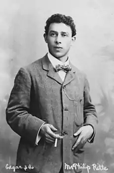 Philip Ritte was born in Edinburgh, Scotland, in 1871 as Philip Rittenberg, the son of Bernhard Rittenberg (of Lithuanian Jewish descent) and Bertha Wasserzug (of Polish Jewish descent).[1][2] He was one of seven children.[2][3] He was educated at Cowper Street School in London and studied art before moving on to study music.[1] In 1899 he married Henrietta Helena "Lillie" Latte; his profession at this time being given as that of a lithographic artist on the marriage certificate.[2][4] They had four children.[2] In 1918 he changed his name to Philip Ritte.[2]