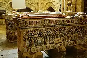 The remains of Infante Philip lie in a Gothic tomb, located in the church's chapel of St James, next to the tomb of his second wife. In the same chapel there is a third tomb, dating from the 14th century, in which lie the remains of a knight of the Order of Santiago. The graves of the Infante and his wife were previously located in the church's choir, until the provincial Commission of Monuments decided to move them to their current location.[18]