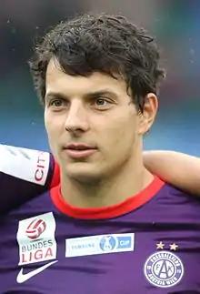 In his debut season with Austria Wien, Hosiner scored 32 league goals to finish as the "Torschützenliste", top scorer, of the Austrian Bundesliga.[9] Hosiner was also voted as the "Player of the Season" in the Bundesliga as Austria Wien won their first league title since 2006 with a 4−0 win over SV Mattersburg on the final day of the season.[10][11] However Hosiner failed to replicate his goal-scoring exploits in the final of the Austrian Cup on 30 May 2013, as Austria Wien fell to a 1−0 defeat to third division side FC Pasching, thanks to a goal from Daniel Sobkova.[10] Hosiner was injured at the start of his second season at Austria Vienna, but he still managed to score 14 league goals in his final season at the club, before his move to French club Rennes.
