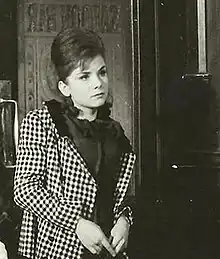 Interspersed amongst her stage work were film and TV parts, including starring as the seductive Jane in The Troubleshooters, This Is My Street, Man in a Suitcase, the title role in William Douglas Home's The Reluctant Debutante (ITV Play of the Week), Giants On Saturday, Triangle, Brett, Coronation Street, The Sweeney and the Ruth Rendell thriller A Fatal Inversion.[5][6][1]
