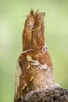 The Philippine frogmouth (Batrachostomus septimus) is a nocturnal bird that can be found throughout the Philippine archipelago. It is common in lowland forests and maturing second growth. There is little information about the bird. It feeds on grasshoppers, cicadas, crickets and beetles.
