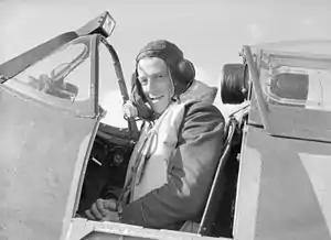 ![]() Leckrone in the cockpit of his Spitfire, September 1940 | |