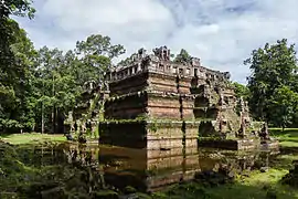Phimeanakas (Khmer: ប្រាសាទភិមានអាកាស, Prasat Phimean Akas, 'celestial temple') or Vimeanakas (Khmer: ប្រាសាទវិមានអាកាស, Prasat Vimean Akas) at Angkor, Cambodia, is a Hindu temple in the Khleang style, built at the end of the 10th century, during the reign of Rajendravarman (from 941 to 968), then completed by Suryavarman I[1]: 115, 135 [2]: 371 in the shape of a three tier pyramid as a Hindu temple. On top of the pyramid there was a tower, while on the edge of top platform there are galleries. Phimeanakas is located inside the walled enclosure of the Royal Palace of Angkor Thom north of Baphuon.[3]