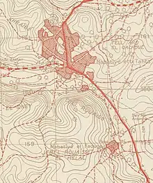 Tell Rouaiss and Jebel Rouaïsset on a 1943 map of Nabatieh and Nabatieh Fawka
