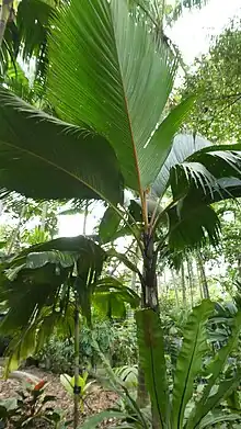 This palm is adaptable and is able to colonise disturbed habitat; however, some populations may be threatened by fire (on Praslin), development, or invasive species. The harvesting of leaves is generally carried out in a semi-sustainable manner although local over-exploitation may occur.[4]